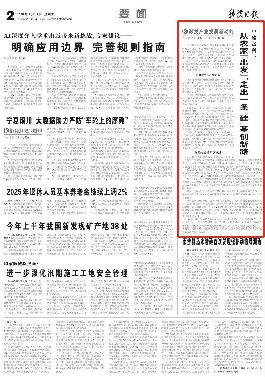 • [2025-07-11] 《科技日?qǐng)?bào)》報(bào)道中硅高科“硅”基創(chuàng)新路
